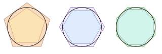 Come si vede, all’aumentare del numero di lati della figura regolare, si ottiene una approssimazione migliore.