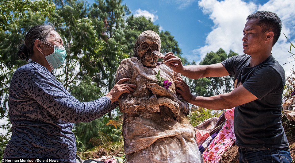 Inizialmente, il corpo viene mummificato per facilitarne la riesumazione e posizionato nella casa natale. Successivamente, ad agosto, durante la cerimonia, i defunti vengono lavati, vestiti e portati in giro per le strade del villaggio. Questa pratica implica per i Toraja un giusto seppellimento e il solo modo attraverso cui sia possibile giungere nell’aldilà.