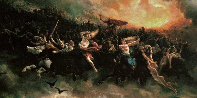 “Thor: Ragnarok” è il terzo capitolo della trilogia Marvel e (spoiler) racconta la distruzione di Asgard. In realtà, Ragnarok è la fine del mondo, l’apocalisse seguita poi dal giudizio universale. Quando il mondo si regge ancora in piedi, i guerrieri valorosi vanno nel Valhalla, trasportati dalle Valchirie; ma qui il mondo si distrugge del tutto. Ragnarok è, inoltre, un concetto affascinante tutt’ora, tanto da raccontarlo nelle serie tv odierne: in “Vikings” i personaggi diventano cupi e tenebrosi quando se ne parla, ma finalmente Lagherta, l’eroina femminile dello show, lo racconta. Nell’antichità vi sono diverse fonti che lo raccontano, tra cui il “Muspilli“, scritto in antico alto tedesco, che narra la distruzione del mondo. “Muspilli” è simile al nome “Muspellheimr“, il mondo dei giganti del fuoco. Vi è un collegamento etimologico, come se il mondo cadesse nelle fiamme. Quando Ragnarok soccomberà, verrà un inverno terribile, della durata di tre anni, dopodiché le relazioni tra le persone si romperanno, ci saranno guerre e carestie e poco a poco tutte le fonti di luce si spegneranno: il sole, la luna e le stelle. Così, il mondo cadrà nell’oscurità. In seguito, dalle ceneri, il mondo risorgerà e i figli degli dei prenderanno il posto dei loro genitori.