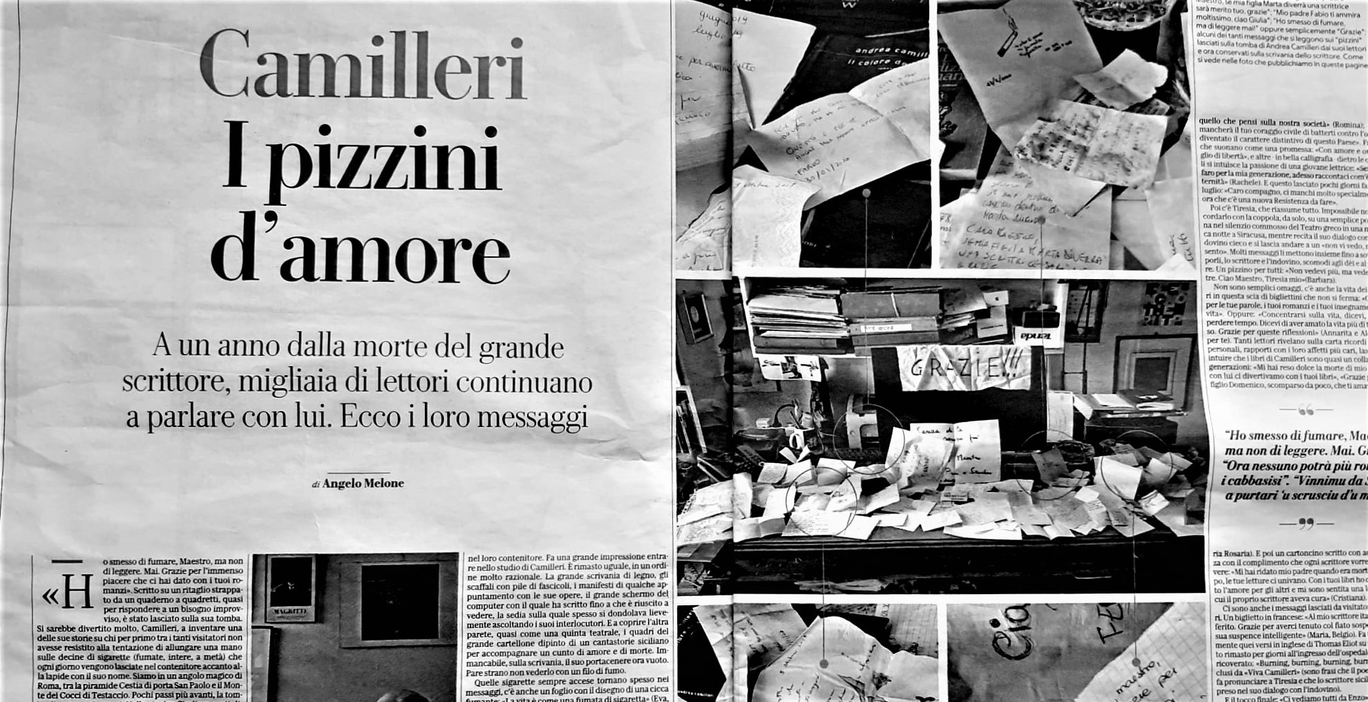 Andrea Camilleri ci ha lasciato il 17 luglio del 2019 e, dopo un funerale strettamente privato, è stato sepolto nel cimitero acattolico di Roma. Tuttora sulla sua tomba vengono lasciati bigliettini, lettere e oggettini di ogni tipo in segno di riconoscenza. Angelo Melone scrive: “Il flusso di affetto che lo ha accompagnato nella vita non si è interrotto, anzi. E si è via via materializzato […]. A scrivere, ora, sono i suoi lettori: una marea di pizzini per Camilleri semplici, commossi, spontanei”.