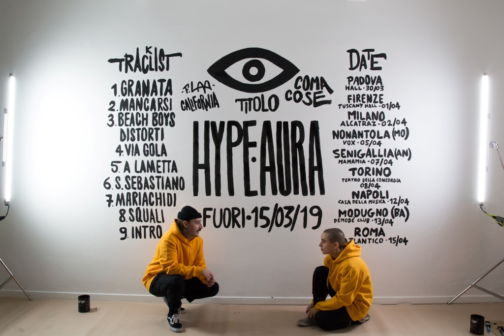 Tante volte il gioco di parole è stato utilizzato in ambito letterario, ma, anche in musica, le arditezze linguistiche possono diventare la vera e propria cifra stilistica di un genere o addirittura di un artista: è il caso dei Coma_Cose, due milanese di adozione formato da California e Lama, al secolo Francesca e Fausto, che con il loro album d’esordio fanno del gioco di parole il loro elemento caratterizzante, già a partire dal titolo: Hype Aura, uno stratagemma sonoro difficilmente comprensibile al solo sguardo, almeno fino a quando non viene pronunciato ad alta voce in modo da rimarcare chiaramente l’omofonia con la locuzione “hai paura”.  I Coma_Cose mostrano una piena padronanza del lessico pop, trovando ispirazione nella realtà urbana che vivono quotidianamente, quella della Milano frenetica e malinconica lontana dal glamour, quella di Via gola, fatta di tramonti coperti dai palazzi, fermate della metro, venerdì sera nei locali e lampioni nella nebbia.