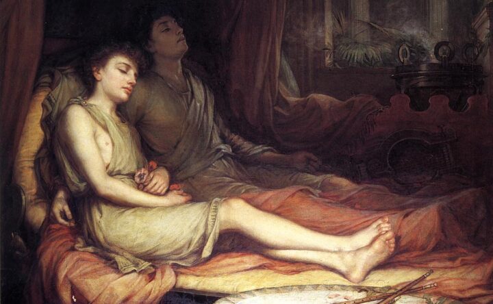 Nella mitologia greca infatti, Thanatos è la personificazione stessa della morte. Secondo Esiodo, quest’ultimo è figlio di Nyx, cioè della notte, Omero dal canto suo ne fa il fratello gemello di Hypnos, la personificazione divina del sonno.