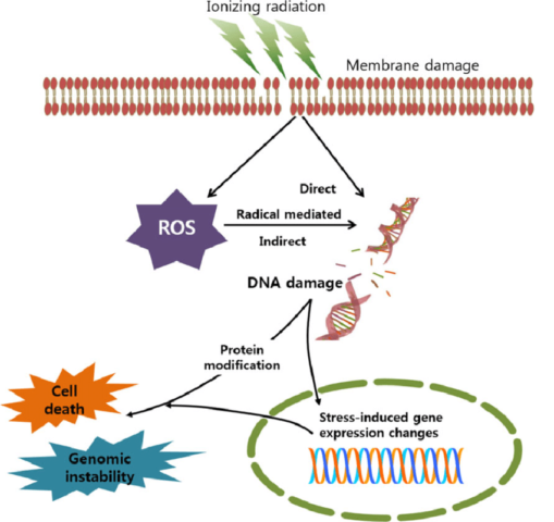 Da un punto di vista intracellulare è stato dimostrato che l’aumento del tasso di tumori all’interno degli astronauti, così come nelle persone che sono state esposte a radiazioni derivanti dai disastri nucleari, si può ricondurre prevalentemente ad un aumento della sintesi dei radicali liberi dell’ossigeno ma anche a rotture nei filamenti di DNA le quali possono coincidere con hot-spots legati all’insorgenza tumorale. La rottura di entrambi i filamenti di DNA, nota come Double Strand Break, rappresenta uno degli eventi più pericolosi che può verificarsi all’interno delle nostre cellule e i meccanismi di riparazione che possediamo non risultano essere caratterizzati da un’elevata fedeltà e per tale motivo possono compiere errori durante il loro lavoro determinando delle mutazioni che possono rendere il liquido suscettibile al cancro.