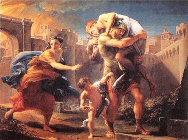 Completamente all’opposto, invece, potremmo trovare i tantissimi eroi decantati nelle opere della classicità. I grandi protagonisti dei grandi poemi epici, ad esempio, sono consapevoli e delle capacità sovrumane di cui sono stati dotati e dell’altrettanto importante ruolo che è stato affidato loro dal Fato. Esempio più calzante è proprio la figura di Enea. Semidio, figlio di Anchise e Venere, l’eroe troiano è il protagonista dell’Eneide, il poema virgiliano che dà lustro alla genesi del popolo romano e della gens Iulia. Guerriero dalle capacità indiscutibili, l’uomo fugge da Troia nella notte in cui questa è messa a ferro e fuoco dai Greci, fuoriusciti dal ventre cavo del cavallo di legno. È giusto sottolineare, però, che Enea, uomo dalla moralità esemplare, mai avrebbe abbandonato città e compagni al loro destino: l’ordine di salpare lontano da Ilio giunge infatti dagli dei, che lo avevano designato come progenitore della futura stirpe romana, che sarebbe nata là dove Enea avrebbe fondato una nuova città, il Lazio. Enea, quindi, non fugge dalle proprie responsabilità: sa bene di essere un predestinato, è conscio del fatto che non può decidere autonomamente della propria sorte. Proprio per questo, pur di mostrarsi ossequioso verso gli dei e la missione da essi affidatagli, rinuncia di fatto a tutto ciò che gli è più caro: la lotta e la morte eroica al fianco dei compagni nell’incendio di Troia; la moglie Creusa, persa nella fuga dalla città; l’amore di Didone, la regina tanto amata a Cartagine.