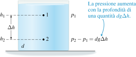 Dove p è la pressione del fluido, ρ è la densità del fluido, g è l’accelerazione di gravità e h è la profondità. Se sul liquido agisce una pressione esterna allora la pressione totale che agisce ad una certa altezza è: ptot = pESTERNA + ρgh;
