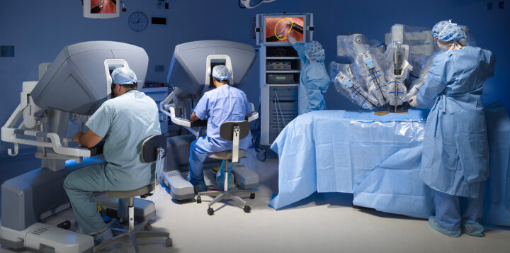 Il chirurgo opera a distanza, attraverso i quattro bracci del robot, con estrema precisione, eseguendo incisioni molto più sottili e meno invasive.