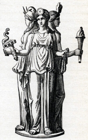 Un altro aspetto della mitologia greca è rappresentato da Ecate, la divinità delle arti magiche e della stregoneria, nonché regina dei demoni, degli spettri e delle anime dei defunti. Ecate era invocata da chi praticava la necromanzia e, secondo alcuni miti, era madre di Medea, Circe e Scilla. Le sue ancelle, note come Lamie o Empuse, erano creature femminili che combinavano sembianze umane e animali. Erano temute per il rapimento dei bambini o per apparire come spettri seduttori, attrarre giovani uomini e nutrirsi del loro sangue. Queste figure erano considerate servitrici di Ecate, ma alcune tradizioni le vedono come sue figlie. Col tempo, nel Medioevo, il termine “Lamie” si trasformò in sinonimo di strega.