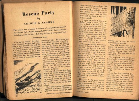 Se il mondo dovesse finire, che ne sarebbe di tutto quello che abbiamo creato? È qui che ci viene incontro Clarke. In Rescue Party, un breve racconto fantascientifico pubblicato per la prima volta nel 1946, alla luce dell’esplosione solare che si sarebbe verificata da lì a poche ore, gli alieni visitano la Terra. A discapito di quello che potremmo aspettarci non lo fanno per smania di conquista di un nuovo mondo, ma per salvare la nostra specie e gli oggetti simbolo della nostra cultura. Hanno poche ore per esplorare il pianeta e seppur non riuscendo a trovare gli esseri umani si imbattono in edifici e oggetti della nostra specie. Reperiscono un dipinto ad olio che permette loro di capire l’aspetto fisico di un essere umano con due sole gambe e due soli occhi; si ritrovano in una biblioteca piena di libri dei quali percepiscono l’importanza, la complessità e captando la grandezza dell’ingegno umano, tanto da prenderli e portarli con loro, per salvarli e analizzarli nella loro Base.