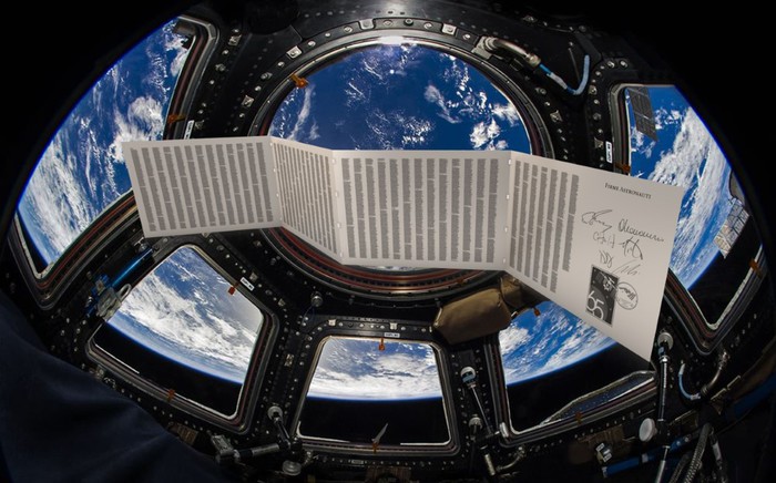 L’opera, incisa su foglio in titanio e oro, sarà affidata da Scripta Maneant Editore in collaborazione con Human Space Services, alla missione spaziale ISS-Expedition 66.
