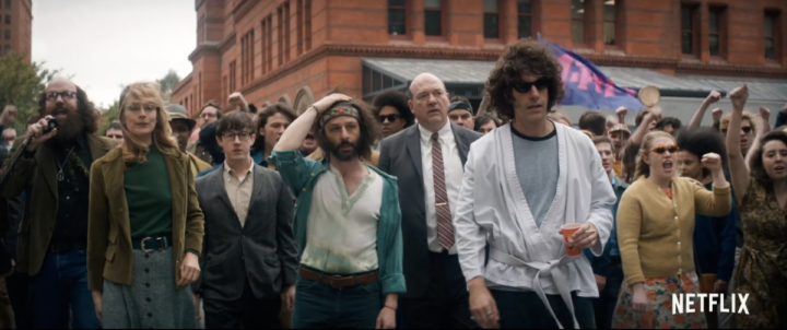 “Non esistono i processi politici!”. Così l’avvocato Kunstler apostrofa un brillante Abbie Hoffman nel nuovo film firmato Netflix: The Trial of the Chicago 7. Il film, disponibile in streaming in Italia dal 30 settembre 2020, ha ricevuto ben 6 nomination agli Oscar 2021.