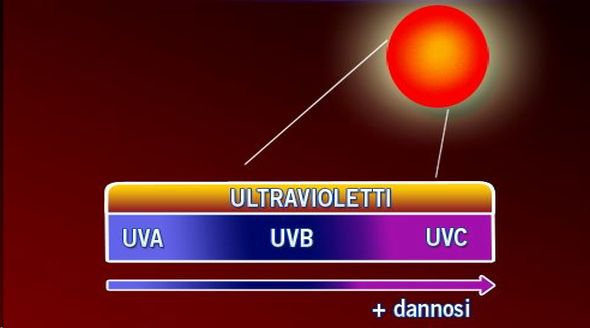 I raggi Uv, che si dividono in Uva, Uvb, e Uvc, sono quelli più attivi dal punto di vista biologico. In particolare sono in grado di causare le ustioni a livello della pelle e l’oftalmia da neve.