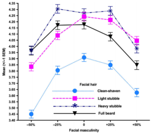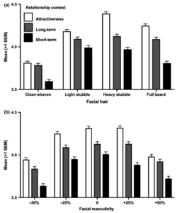 L’insieme dei risultati mostra come l’attrazione per la barba porti a valutazioni maggiori per relazioni a lungo termine, piuttosto che per quelle a breve termine. Inoltre, un volto leggermente più mascolino e femminile (del 25%) viene preferito a uno estremamente femminile o mascolino (del 50%).