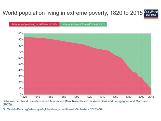 Quante volte avete sentito ripetere questa frase negli ultimi quarant’anni? Sociologi, filosofi ed intellettuali di ogni genere, economisti, ambientalisti e persino la signora Maria della porta accanto. Viviamo infatti in un’epoca colma di pessimismo che asserisce la fantomatica tesi: l’uomo sta distruggendo se stesso ed il mondo. Ora, non voglio dire che non ci siano problemi ambientali, economici o sociali, ma è pur vero che questi sono tutt’ora oggi osservati e studiati per poter essere superati. La verità è che viviamo nel periodo storico con il maggior tasso di benessere globale di tutti gli altri. Suona strano? beh, pensiamo al fatto che l’umanità riesce, anno per anno, ad allungare la propria media di vita. Abbiamo poi un reddito pro – capite a livello mondiale superiore a quello di qualsiasi altro secolo. In ultima istanza, oggi abbiamo molti più diritti e libertà dei nostri avi.