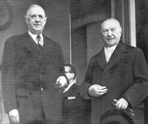 Adenauer è stato uno dei padri fondatori della Comunità europea, insieme ai francesi Robert Schuman e Jean Monnet e all’italiano Alcide De Gasperi.