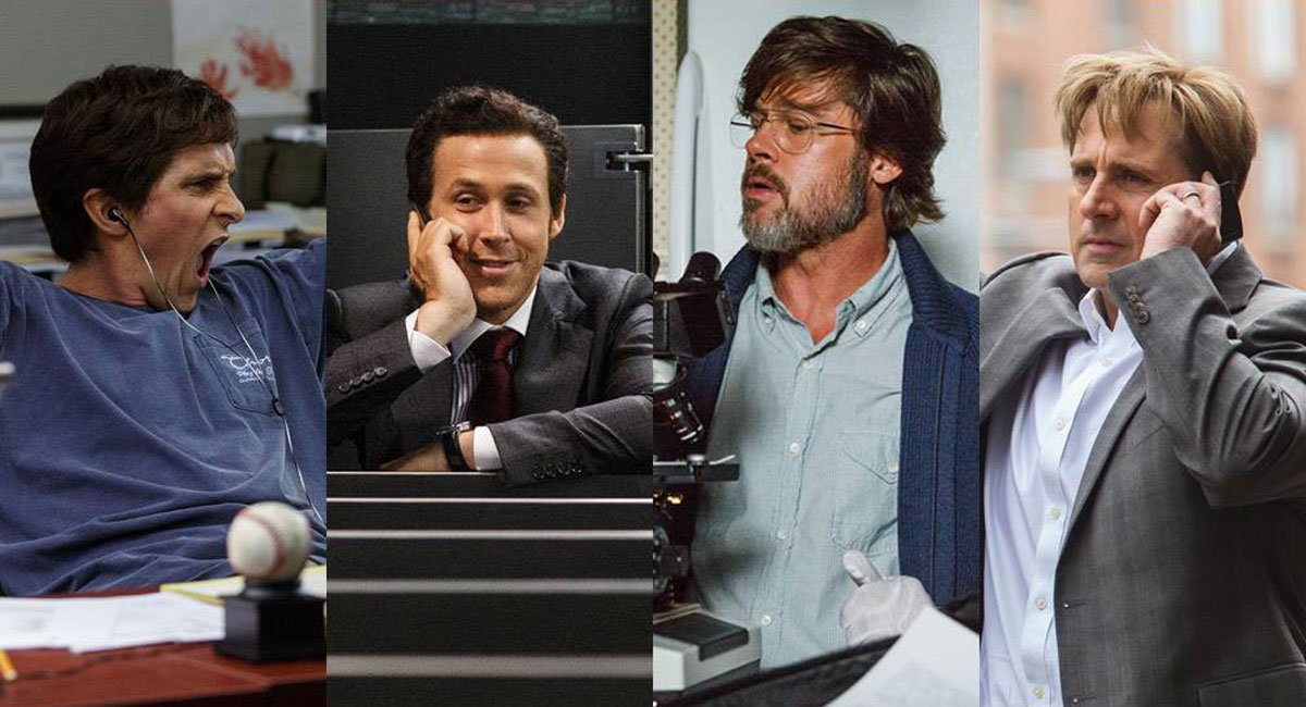 “La Grande Scommessa” basa la sua storia, per esser più precisi, sulla crisi finanziaria, – quella comunemente detta ‘dei Subprime’, la quale, nata a fine 2006 da una bolla speculativa nel mercato immobiliare statunitense, innescò una crisi (macro) economica su scala globale senza precedenti. Christian Bale è Michael Burry, l’insolito manager di un fondo di investimento privato, il quale intuisce la gravissima instabilità del mercato immobiliare statunitense. Esso, si convince, è un falso: una tozza e stracolma bolla speculativa è pronta a tuonare impetuosa, con effetti imprevedibili sui mercati globali. Perché, allora, non guadagnarci su? Burry decide – pare un gioco di parole – di speculare sulla speculazione: tramite la creazione di un mercato di CDS (credit default swap) scommette contro il mercato immobiliare, scommette, cioè, contro le grandi banche statunitensi. Conseguirà un profitto del 489% con un utile complessivo di quasi tre miliardi di dollari. Eppure, nessuno sembrava credergli, nessuno tranne l’investitore Jared Vennett (Ryan Gosling), dirigente della Deutsche Bank di New York, che viene a sapere delle intenzioni di Burry e convince il trader Mark Baum (Steve Carrell) a ‘partecipare’ alla scommessa, mettendo una propria quota nel mercato dei CDS. Guadagneranno 47 milioni e 1 miliardo di dollari rispettivamente. Partecipano all’operazione finanziaria, infine, Charlie Geller e Jamie Shipley, due giovani investitori che chiederanno aiuto al pensionato banchiere Ben Rickert (Brad Pitt). Ricaveranno 80 milioni di dollari.