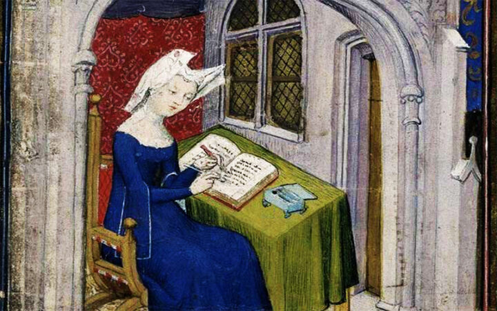 Christine de Pizan è stata la prima donna europea emersa nella letteratura che non sia caduta nel baratro della storia. Dovremmo essere cauti quando si concedono questi primati poiché effettivamente non si sa se ci siano state altre donne prima di lei di cui non siano state riportate le parole. La grandezza di questa scrittrice tuttavia è arrivata fino a noi. Christine, vissuta nel Medioevo, ha origini italiane ma si trasferisce subito in Francia alla corte di Carlo V per via del padre. Conduce una vita tranquilla immersa nei libri dell’immensa biblioteca reale ma la sua esistenza cambia radicalmente con la morte del padre e del marito. Christine si ritrova a dover mantenere i suoi 3 figli da sola e decide di farlo attraverso la scrittura. Il tempo e l’ambiente in cui vive non saranno terreno fertile per la sua professione. Dovrà fare i conti con una società patriarcale che limita la sua libertà. Nonostante ciò questa tenace donna non si ferma e scriverà un’opera fondamentale per la letteratura femminile: “La città delle Dame”. Per la prima volta viene messa in luce la questione femminile e il fatto che le donne non siano inferiori intellettualmente ma culturalmente, l’accesso all’istruzione per loro era vietato. La Pizan è la prima donna che impugna la penna a difesa del proprio sesso.