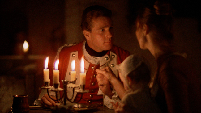 L’indagine storica spazia ancora di più nelle vicende che accadono attorno ai personaggi e nelle quali essi sono coinvolti. Dunque, se Manzoni nei “Promessi sposi” introduce i tumulti del pane di Milano e la peste bubbonica del XVII secolo, il duo Thackeray-Kubrick parla della Guerra dei Sette anni, alla quale il protagonista Redmond Barry partecipa nelle battaglie di Minden (1759, tra le file inglesi) e di Warburg (1760, nell’esercito prussiano), entrambe realmente avvenute e poco conosciute. E se Kubrick desume la trama dal romanzo, nondimeno si impegna per rappresentare per filo e per segno il modo di combattere dei soldati, le situazioni che si creavano nei reggimenti anche con le risse tra soldati o la diserzione frequente. Inoltre ricostruisce balli tipici e folkloristici con le relative musiche, le quali sono anch’esse desunte completamente dall’epoca in cui è ambientato il film: dal concerto riservato ad una platea ristretta e nobile fino alle marce militari e alle fanfare, Kubrick non cessa mai di sottoporre all’udito dello spettatore la musica risalente al tempo in cui tutto è collocato. Musica che fa da contorno ad un paesaggio quasi statico, ovattato, frutto della visione che Kubrick ha di un secolo in cui tutto, tranne le scene di guerra, sembra immobile: la campagna, i prati, i giardini, la vita di corte (che ricorda un po’ quella del “Giovin Signore” di Parini). Tutto è apparentemente calmo, tranquillo e placido proprio come nei quadri che lo ritraggono, ma prelude ad un periodo di enormi scossoni: gli eventi del film terminano nel 1789, data simbolica che non c’è bisogno di chiarire. E anche qui l’indagine prende piede e si espande in ogni frangente, mettendo in luce i passatempi dei nobili dediti perlopiù a frivolezze e al gioco d’azzardo, ad uno stile di vita spendaccione che li conduce ad indebitarsi. Poi ci si sposta alla piccola e medio borghesia, arrivista e intraprendente, che fa di tutto per arricchirsi e in grado di trasformare persino un giovane di forti sentimenti romantici come Redmond in una persona che cerca solo di sistemarsi per bene. Ultimo ma meritatissimo focus: le luci, ciliegina sulla torta della ricostruzione di Kubrick. Per avere la resa migliore di colori, vestiti e fisionomie, il regista ha deciso di girare solo con la luce naturale. Ciò, finché le scene sono ambientate all’aperto, non crea un grosso problema per un talentuoso come lui. Ma quando la luce cala e ci si sposta in scene notturne dentro i palazzi dei nobili o l’umile casa di una contadina prussiana, entra in gioco una speciale macchina da presa con un innovativa pellicola a sensibilità elevata in grado di riprendere con la sola illuminazione delle candele, proprio come erano abituati a vedere al buio gli occhi nel Settecento. Tutto è presentato precisamente come doveva essere.