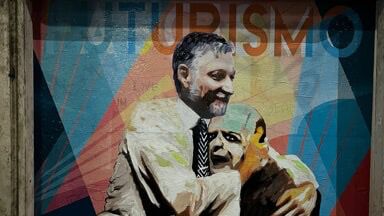 I murales di Greb non sono affatto casuali. Le analogie tra fascismo e futurismo sono sempre state argomento di discussione e di interesse artistico quanto politico. Per anni, infatti, si è parlato di come alcuni futuristi italiani abbiano collaborato nella diffusione dell’ideologia fascista. Punto in comune tra il partito e il movimento futurista è certamente il voler esaltare la velocità, la rapidità del progresso tecnologico tipico della vita moderna, “la passione per l’Italia e per il nuovo” come dirà Marinetti. Un’idea sulla quale si fondano i numerosi movimenti di avanguardia e i nazionalismi che caratterizzarono il panorama europeo della prima metà del travagliato secolo breve. A rafforzare l’idea che il Futurismo fosse la vera culla del fascismo sono state anche tutta una serie di dichiarazioni, come quella del giornalista futurista Somenzi il quale affermò che il futurismo fosse “il patrimonio spirituale del fascismo”. Ad ogni modo, Futurismo e Fascismo non sono sempre andati di pari passo. Punto di disaccordo era sicuramente la volontà del partito di portare avanti i valori tradizionali del passato, volontà non condivisa da Marinetti e i suoi seguaci.