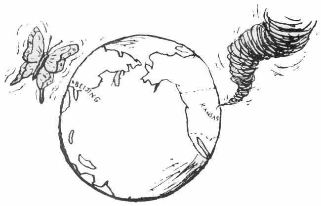 La frase fa riferimento alla teoria del caos. Prima di parlare di caos occorre fare una specificazione: il caos non è la casualità. Un evento casuale è appunto, casuale e totalmente imprevedibile. Un evento caotico è invece estremamente complesso, ma governato da leggi deterministiche. La sua previsione è molto difficile solamente perché il sistema è estremamente complesso.
