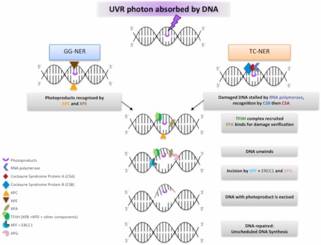 Come anticipato precedentemente, la maggior parte delle condizioni di xeroderma pigmentoso sono dovute ad un difetto ereditario nella riparazione dei danni al DNA UV-indotti, spesso a carico del meccanismo NER, ossia di escissione dei nucleotidi. Ancora oggi, tuttavia, si fatica a comprendere quali siano le cause di perdita di funzioni intellettive e come queste siano correlate ad una maggiore o minore esposizione alla luce solare. Oggi si ritiene che la patologia neurologica possa derivare da un eccessivo stress ossidativo a livello neuronale, causando alterazioni nel metabolismo cellulare. I pazienti affetti da questa malattia autosomica recessiva sono estremamente sensibili ai raggi ultravioletti del sole e sviluppano delle macchie pigmentate, dei tumori e anche degli epiteliomi, anche dopo delle brevissime esposizioni solari. Infatti, hanno un rischio relativo di insorgenza di un tumore cutaneo di circa 1.000 volte maggiore rispetto ad un individuo di riferimento della popolazione generale.