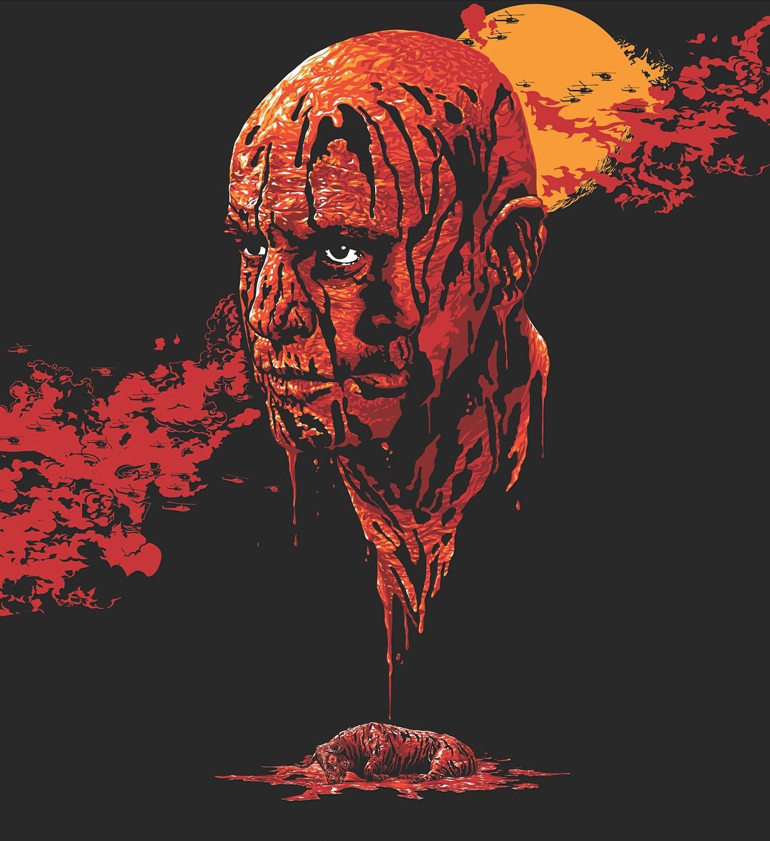 La volontà di Kurtz è quella di morire; egli è quasi un Re-Sacerdote a metà tra la sfera divina e quella umana. Kurtz, in procinto di morire, è disposto a sacrificarsi pur di trasferire il potere nelle mani di un nuova divinità. La forza di Kurtz sta nell’essersi elevato al di sopra della morale, proprio come un Dio. Per Kurtz non esiste giusto o sbagliato, il suo animo ascende verso il divino, attraverso questo suo porsi al di sopra del bene e del male. Nel monologo finale, che ricalca ampiamente l’opera di Conrad, il nuovo Kurtz è il risulato di tutto l’orrore che ha assimilato, espressione del più intimo sentire della psiche umana. Tuttavia, a differenza dei colonizzatori o dei soldati americani, Kurtz non si nasconde dietro finti moralismi, pronto ad esprimere e al contempo esercitare liberamente quell’orrore comune a tutti gli uomini.