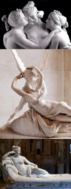 In basso, Canova, Paolina Borghese. Canova fu soprannominato “il nuovo Fidia”