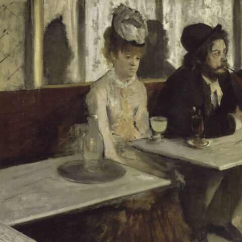 Tra le opere che meglio ricalcano i sentimenti di turbamento e desolazione, una menzione d’onore va al celebre “L’assenzio”, 1873. La famosissima scena si svolge al caffè Nouvelle-Athènes, dove le due figure modellate da Ellen Andrée (attrice) e Marcellin Desboutin (pittore e incisore) siedono allo stesso tavolo ma senza rivolgersi la parola, completamente immersi nel turbinio dei loro pensieri. La donna pare prosciugata di tutta la gioia della vita mentre osserva il bicchiere di assenzio, bevanda talmente alcolica da risultare quasi velenosa e che di lì a poco sarebbe stata ritirata dal mercato. La prospettiva decentrata ed innaturale unita al silenzio dell’incomunicabilità crea un senso di claustrofobia angosciosa tanto forte da rendere l’opera spunto per il romanzo “L’ammazzatoio” di Emile Zolà che portò l’attenzione del pubblico sul dilagante fenomeno dell’alcolismo, estremamente diffuso specialmente nelle classi popolari.
