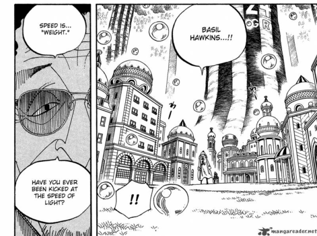 È il momento di parlare dell’altro Superveloce protagonista dei fumetti, questa volta manga, l’Ammiraglio della Marina, Kizaru. Sulla storia di questo personaggio dell’opera ‘One Piece’ si sa poco; si sa solo che è uno dei tre ammiragli e che ha mangiato un Frutto del Diavolo, facente parte della classe dei Rogia, il Pika-Pika no mi, che lo ha reso l’uomo fatto di luce. Tralasciando come possa biologicamente sopravvivere, Kizaru utilizza molte proprietà dalla luce a proprio vantaggio. Al contrario di Flash, lui non può ‘decidere’ a quale velocità muoversi, o luce o umano.