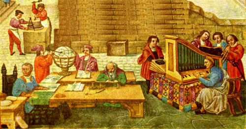 — Il quadrivio (artes reales) comprendeva lo studio dell’aritmetica, della geometria, dell’astronomia e dell’astrologia.