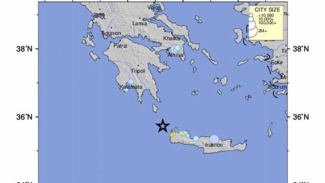 Il terremoto si è verificato in Grecia,in mare, vicino Creta. La scossa ha avuto un magnitudo di 6.0. Il sisma è stato avvertito anche in Italia,Turchia,Egitto e Libia. La scossa è avvenuta a 74 chilometri a nordovest della città di Hania ad una profondità di 56 chilometri. Secondo Ekhatimerini, uno dei più importanti giornali della Grecia, non ci dovrebbero essere feriti o danni, precisando che un certo numero di edifici è stato evacuato. Secondo i sismologi il sisma non è in relazione con quelli che sono stati registrati in Albania e in Bosnia.