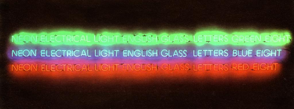 La considerazione trova un parallelismo con Wittgenstein. Egli parla di giochi linguistici, come si legge nel Libro blu: ‘sono modi di usare i segni, modi più semplici di quelli nei quali noi usiamo i segni del nostro complicatissimo linguaggio quotidiano.’ Indicano i diversi modi con cui vengono impiegate le parole, o le proposizioni. Ma i comandi non hanno un vero e proprio referente nel mondo; l’esempio che Wittgenstein ricorda è quello di due muratori. Essi per intendersi scambiavano fra loro delle parole che esonerate dal contesto-cantiere, non avrebbero significato alcunché. Espressioni come : ‘ vieni qui’ o ‘martello’, seguendo la logica del Tractatus, non rappresentano nessuno stato di cose del mondo, rimangono nell’insensatezza linguistica. Eppure a determinati comandi seguiva una risposta ben precisa: il primo Wittgenstein ha dimenticato un intero mondo linguistico e gestuale che, rompendo il silenzio dell’indicibile, parla a gran voce. Il linguaggio diviene gioco, e come ogni gioco, segue delle regole ben precise, che lo strutturano e determinano di senso, il significato delle parole o proposizioni deriva quindi dal suo uso in un determinato contesto. Questo è il gioco linguistico: il fatto che quello che diciamo fa parte anche di quello che facciamo. Kosuth scrive: ‘l’ultimo Wittgenstein tentò con le sue parabole e i suoi giochi linguistici di costruire dei testi-oggetto teoretici che potessero rendere riconoscibile (mostrare) aspetti del linguaggio che, filosoficamente, egli non avrebbe potuto asserire in modo esplicito.’ Così come l’artista non sceglie gli elementi della sua proposizione artistica aventi necessariamente un referente nel mondo, in Neon Electrical Light English Glass Letters, le parole ‘red’ o ‘blue’ non informano dell’effettivo colore con cui è stato realizzato il neon, ma la forma e il significato sono da considerare nella loro fusione di senso, per cui è possibile quella proposizione artistica e non un’altra.